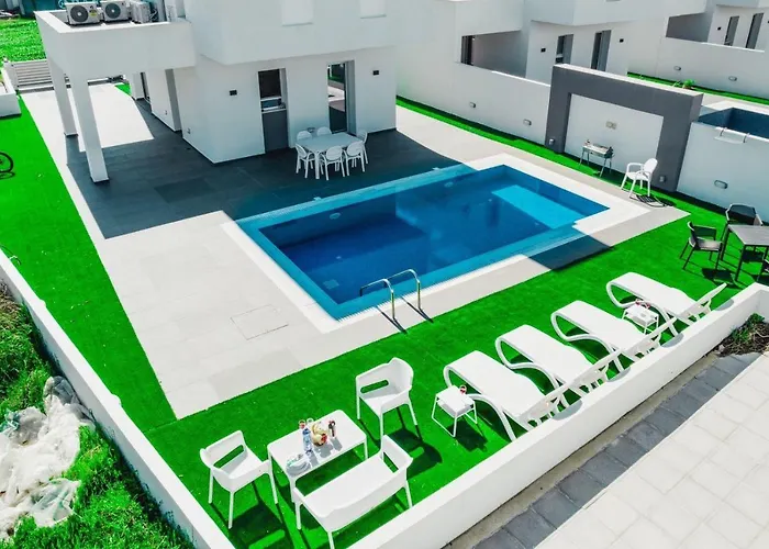 Located 3 km from Agia Napa Promenade, the 3-bedroom Nissi Palms Villa offers rooms with pool views. Extras include a refrigerator, an oven, and kitchenware in a fully-fitted kitchen and a separate toilet and a shower in a bathroom.